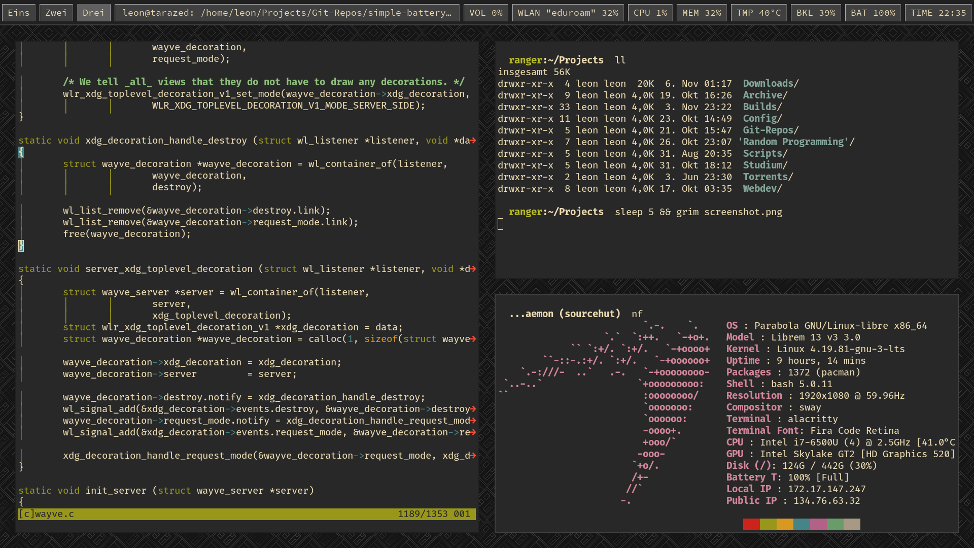 In 2020 I abandoned my own X11 window manager and moved to sway↗.